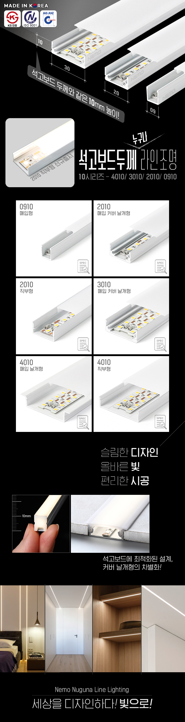 석고보드두께 라인조명